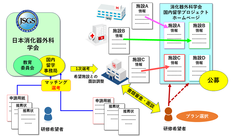 従来、日本消化器外科学会の教育委員会は専門医制度のe-ラーニングの整備、専門医試験の問題作成、資格判定など専門医制度を通した教育が主たる役割でしたが、今回それらのタスクをそれぞれの委員会にシフトし、新たに教育委員会を立ち上げました。この「国内留学プロジェクト」はリニューアルされた教育委員会の企画です。