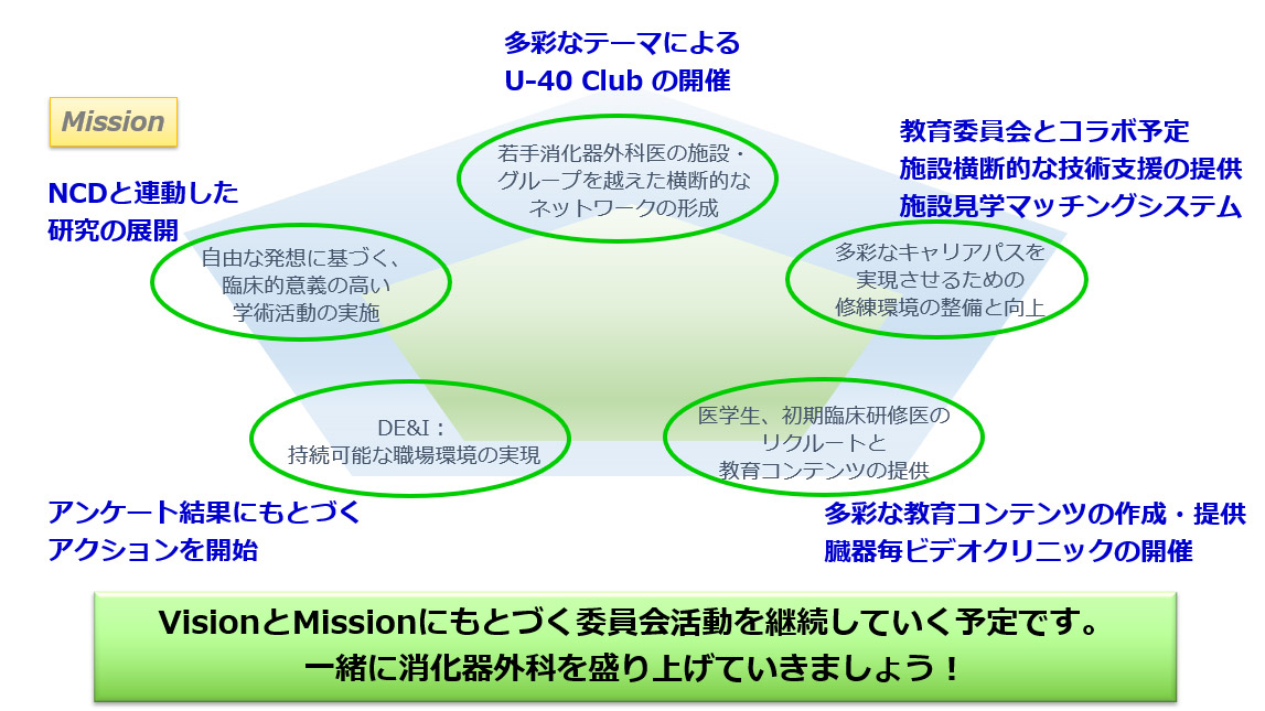 - 消化器外科分野の専門分化,新専門医制度の施行,働き方改革などに伴い,若手消化器外科医がおかれるキャリアパスが多様化している現状を踏まえ,それぞれの消化器外科医が思い描いたキャリア形成を後押しすべく,2020年12月に設立