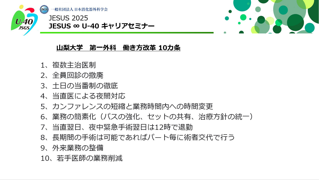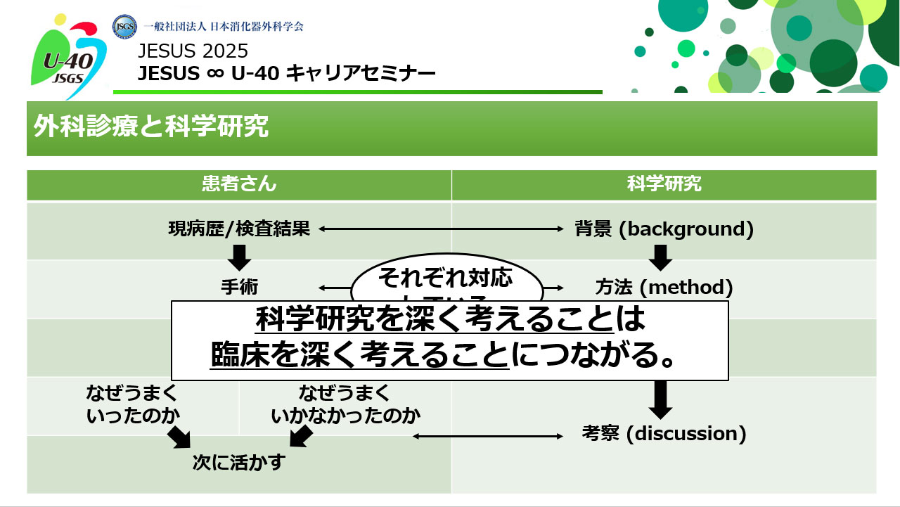 今回で第10回を迎えるJESUSでは,U-40委員会とのコラボレーション企画をご提案いただき,「JESUS ∞ U-40キャリアセミナー」を開催いたしました.