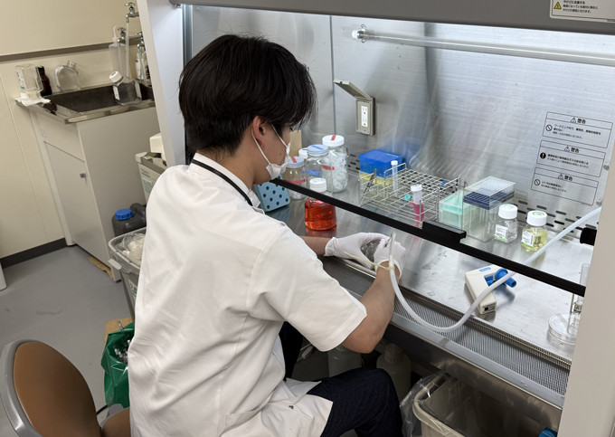 大学院生として,フェロトーシス研究を中心とした細胞実験に取り組んでいます.現象を一つ一つ掘り下げて考えられる点が,臨床とはまた違った研究の面白さだと感じています.日々頭を抱え,思い通りにいかないこともありますが,少しずつ結果が見えてくる瞬間がモチベーションになっています.